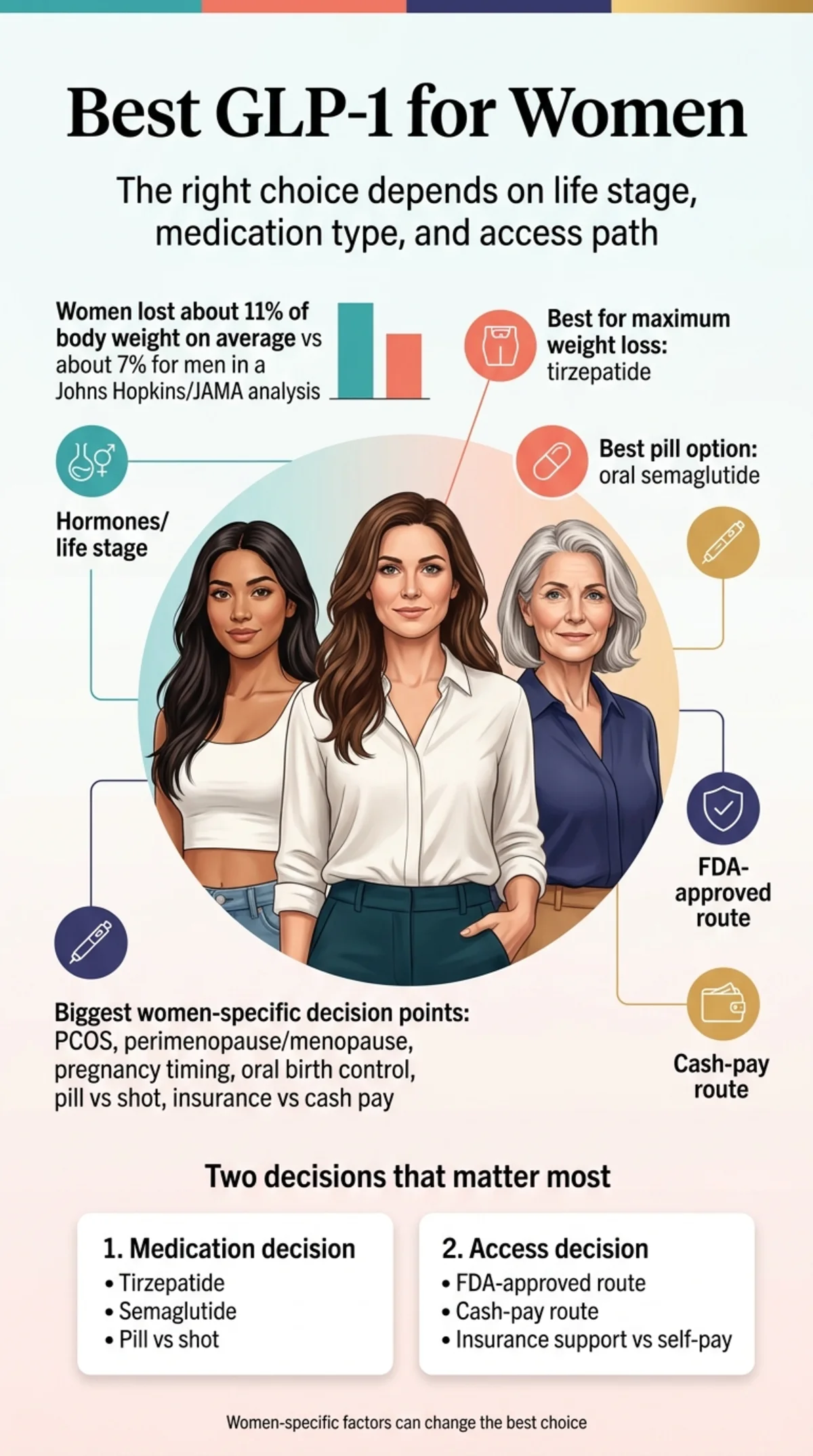 But “best GLP-1 for women” depends on two separate decisions most guides lump together: