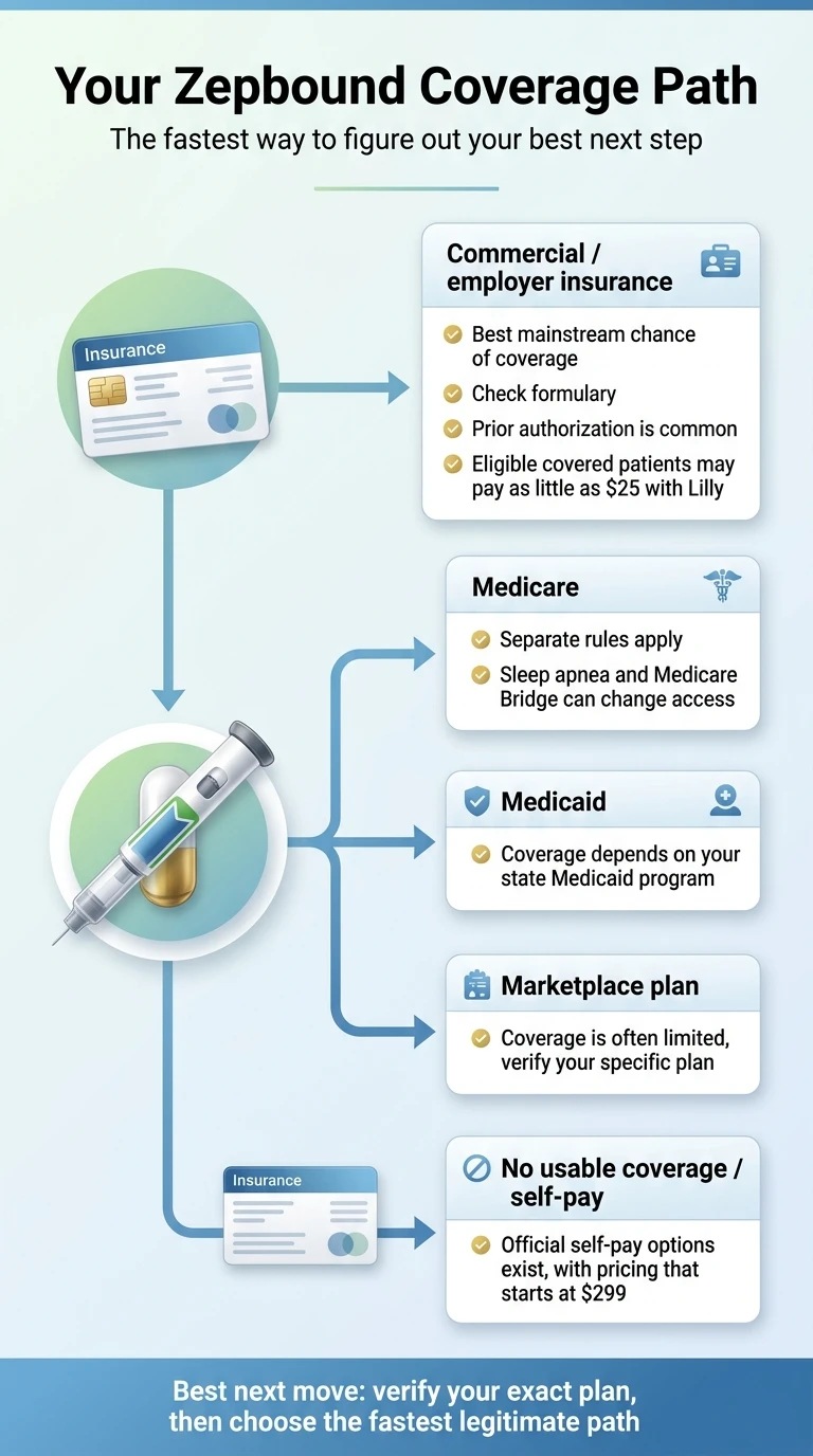 Eli Lilly offers an online coverage checker at zepbound.lilly.com that walks through your insurance type and matches you with savings programs. Useful as a quick screen, but not a guarantee of coverage — your plan documents are the final word.