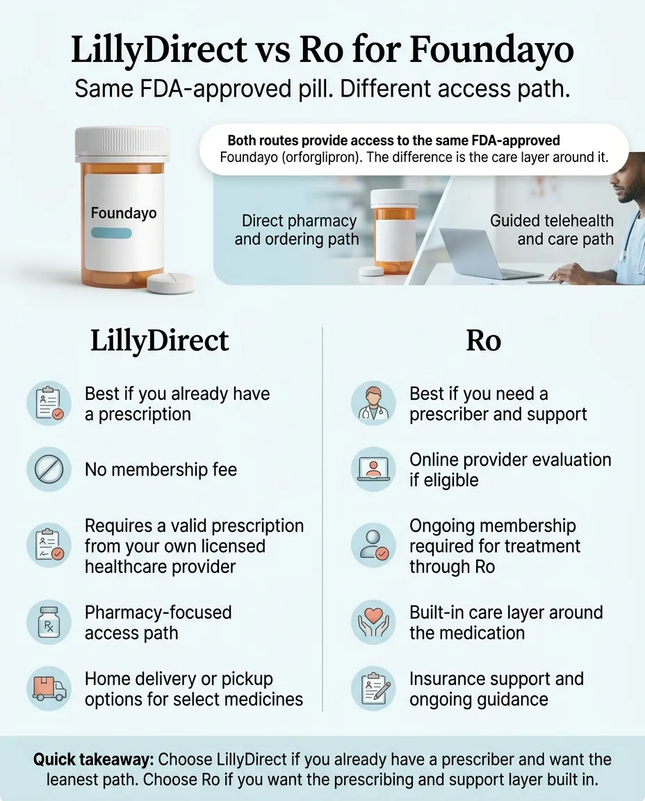 If you're weighing more options than just LillyDirect and Ro, see our Best Foundayo Providers guide for the full lineup.