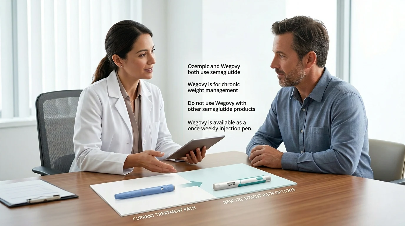 If you’re taking Ozempic primarily for type 2 diabetes — to manage blood sugar, protect your kidneys, or reduce cardiovascular risk — do not treat this as a simple brand swap. Ozempic carries FDA approvals for glycemic control, cardiovascular risk reduction in T2D patients with heart disease, and kidney disease progression in T2D patients with CKD. Wegovy does not carry those diabetes-specific approvals. Switching could disrupt a treatment plan that’s keeping you stable. That conversation belongs with your endocrinologist, not a web page.