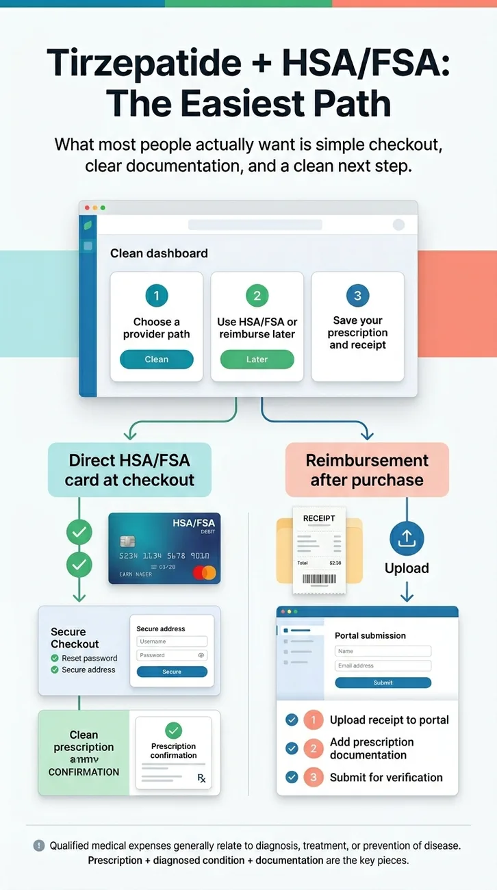 Why tirzepatide matters more for this than most FSA expenses: you're not buying a one-time supply. When you start treatment, you’re starting something ongoing — and your HSA rolls over every year while your FSA doesn’t. The smartest strategy: spend FSA dollars on the first month or two of treatment, then switch to HSA for long-term costs once your FSA balance is zeroed out.