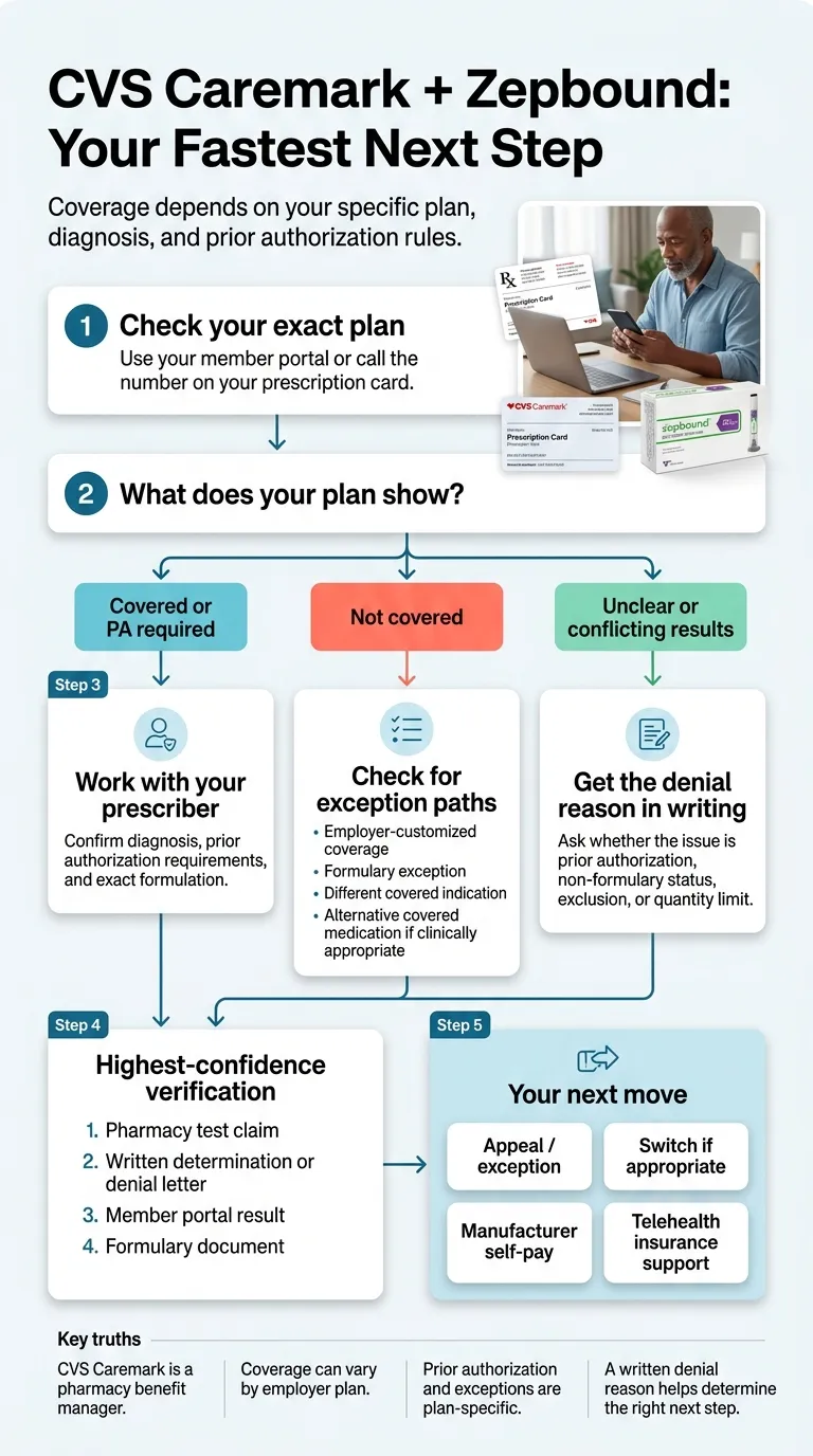 - Your employer customized the plan. Many self-funded employers chose to keep Zepbound on their plan-specific formulary despite CVS Caremark's standard template changes.